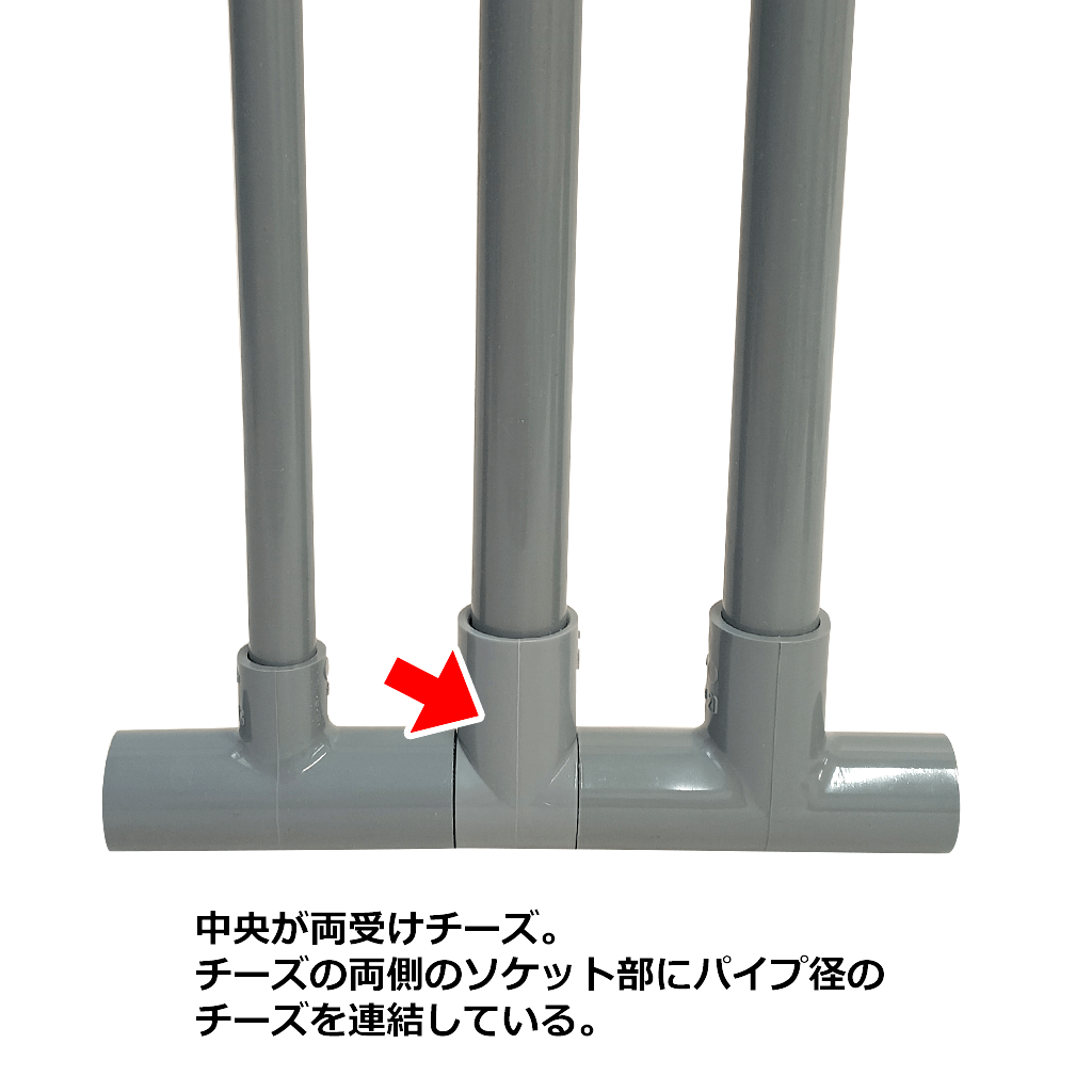 直線側がパイプ径、枝管側がソケットになっているT字型の継手です。